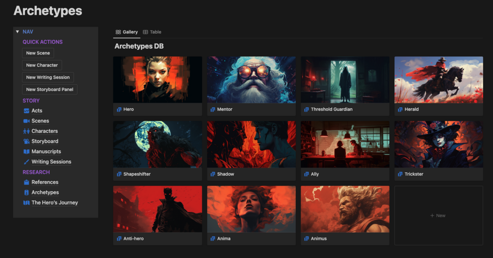 - Archetypes: 10 common archetypes are provided but feel free to add your own.