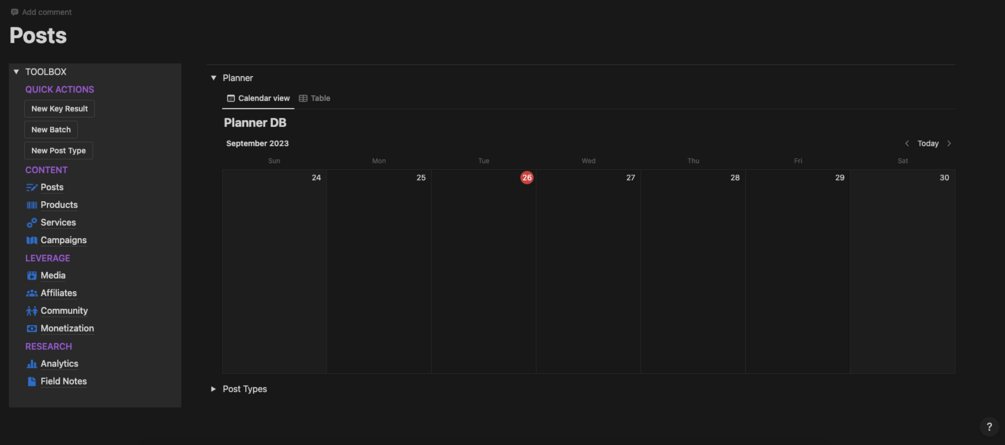 • Affiliates database: If you have affiliate links, drop them here to keep track.